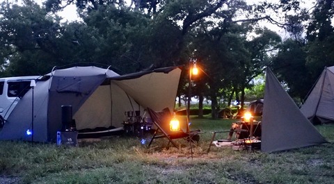9月の飛び石連休があり(そこに)有給をとり、平日を絡めてキャンプに来てる模様、、前回からの続きです 陽が沈みまして照明オン、では焚き火と行きま···
